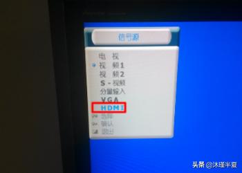 7、然后打开电视,可以直接看到电视上已经显示的信号源,并使用遥控器调整到HDMI选项。